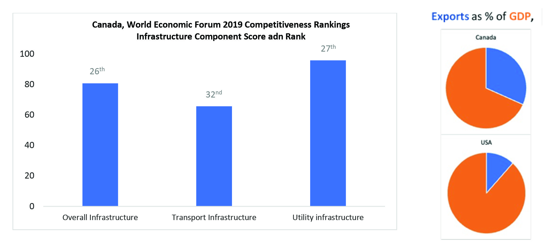 As the call for public engagement in the Assessment correctly notes, “Canada is in a competitive global race at a time of a rapidly changing climate, digital transformation, changing demographics, and shifting geopolitics. Countries with next- generation infrastructure will be outsized winners at this critical movement of transformative change.” Yet, global confidence in Canada’s trade infrastructure has, according to global rankings by the