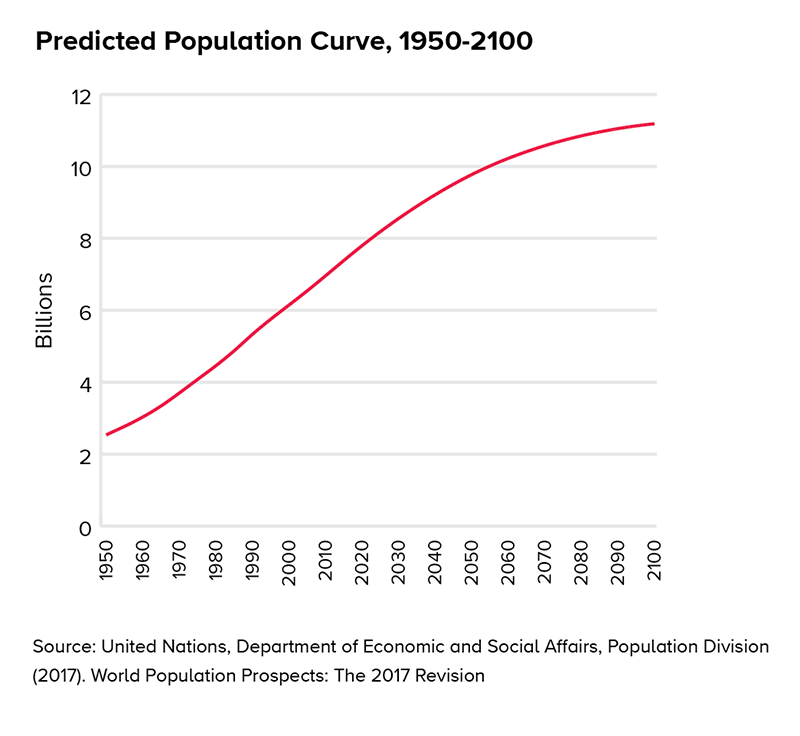 The United Nations predicts that the population will reach nearly 12 billion by the end of the century, with nearly a billion being added in the next decade. Compounding this situation is the number of people that will be entering the Global Middle Class in the coming years.